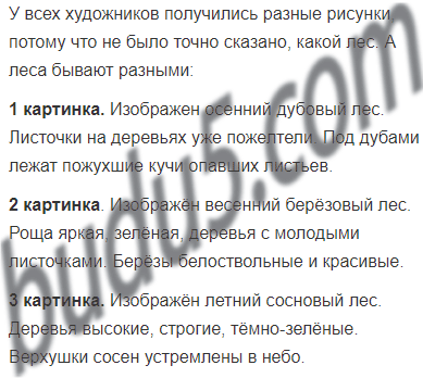 Трёх художников попросили нарисовать лес. Вот что у них получилось. Как ты думаешь, почему все рисунки получились разные? Выбери один рисунок. Устно опиши, какой лес на нём изображён.