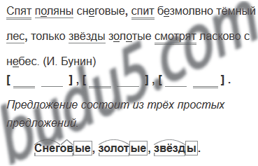 Спят поляны снеговые спит безмолвно тёмный лес только звёзды золотые смотрят ласково с небес. (И. Бунин)