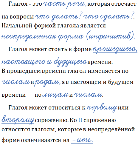 Глагол — это часть речи, которая отвечает на вопросы что делать? что сделать?. Начальной формой глагола является неопределённая форма (инфинитив).