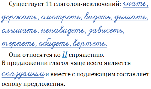 Существует 11 глаголов-исключений: гнать, держать, смотреть, видеть, дышать, слышать, ненавидеть, зависеть, терпеть, обидеть, вертеть.