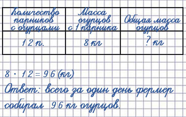 2) Сколько всего килограммов огурцов собирал этот фермер за один день, если с каждого парника он собирал по 8 кг огурцов?