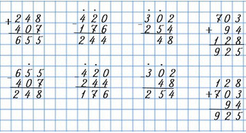 Пишу (единицы под единицами, десятки под десятками, сотни под сотнями): 420 - 176.