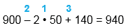 1) 2 • 50 = 100 2) 900 - 100 = 800 3) 800 + 140 = 940 |