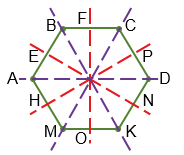 Все ли оси симметрии этой фигуры он провел? Запиши названия тех отрезков, которые будут осями симметрии шестиугольника АВСDKM и которых нет на чертеже.