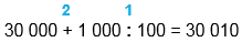 30 000 + 1 000 : 100 = 30 010