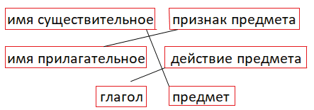 Прочитайте. Соедините линией название части речи и её значение (что обозначает часть речи).