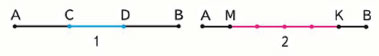 300. Какую часть отрезка АВ составляет отрезок CD на чертеже 1? отрезок МК на чертеже 2?