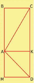 1) Треугольник ACD состоит из 2 треугольников - ACK и AKD. Треугольник ACK - половина прямоугольника ABCK, а треугольник AKD - половина прямоугольника MAKD. Прямоугольника ABCK и прямоугольника MAKD образуют один большой прямоугольник - MBCD. Значит, площадь треугольника ACD - половина от площади прямоугольника MBCD.