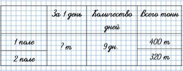 347. Комбайнер убирал 9 дней пшеницу на двух полях. На первом поле он собрал 400 т пшеницы, а на втором - 320 т. Сколько тонн зерна убирал комбайнер за 1 день, если ежедневная выработка была одинаковой?