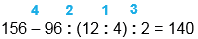 156 - 96 : (12 : 4) : 2 = 140