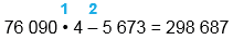 76 090 • 4 - 5 673 = 298 687