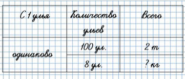 46. Со 100 ульев собрали 2 т мёда. Сколько килограммов мёда собрали с 8 ульев, если считать, что со всех ульев собрали мёда поровну?