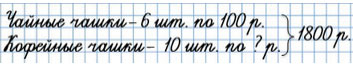 47. За день в магазине продали 6 чайных чашек, по 100 р. каждая, и 10 кофейных, получив за все проданные чашки 1800 р. Сколько стоила кофейная чашка?