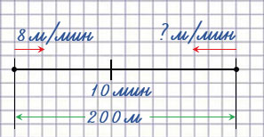 200 : 10 - 8 = 12. Ответ: 12 м/мин.