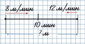 1) 1) 12 + 8 = 20 (м/мин) - скорость сближения.