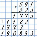 Рассмотри, как умножили 769 на двузначное число и как умножили его на трёхзначное число.