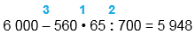 | 6 000 - 560 • 65 : 700 = 5 948 | |