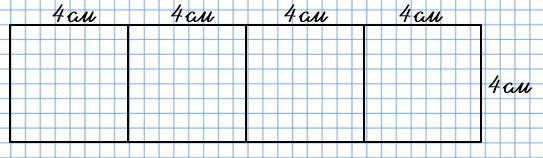 Чтобы найти площадь прямоугольника, нужно его длину умножить на ширину. У 1 прямоугольника длина состоит из 4 отрезков по 4 см, значит длина (4 • 4) см, а ширина 4 см.
