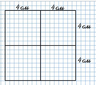 19. Начерти и вырежи 4 квадрата со стороной 4 см. Составь из них 2 разных прямоугольника и найди периметр и площадь каждого из них.