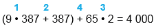 | (9 • 387 + 387) + 65 • 2 | |