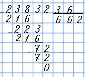 72 : 36 = 2. Частное - 662.