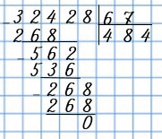 Вторая цифра частного - 0, так как после того, как добавили к оставшимся сотням десятки, не получилось неполное делимое.