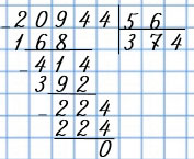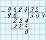 На какое число надо умножить 32, чтобы получилось трёхзначное число с 2 сотнями и 4 единицами? Это число 7. Пишу 7 в частное. 32 • 7 = 224.