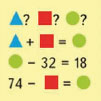 В первом равенстве за треугольником спряталось первое слагаемое. Чтобы найти первое слагаемое, нужно из суммы вычесть второе слагаемое:
