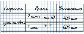 1) 600 - 400 = 200 (км) - проходит катер за 10 ч.