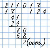 2) Найди делимое, если делитель 17, частное 124, а остаток 2. Сделай проверку.