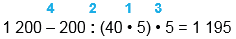 1) 40 • 5 = 200 2) 200 : 200 = 1 3) 1 • 5 = 5 4) 1 200 - 5 = 1 195