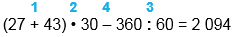 (27 + 43) • 30 - 360 : 60