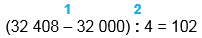 (32 408 - 32 000) : 4 = 102