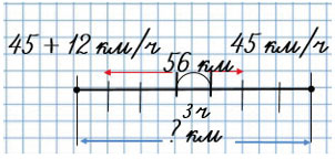 1) 45 + 12 = 57 (км/ч)