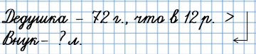 7) Дедушке 72 года. Он в 12 раз старше внука. Сколько лет внуку?