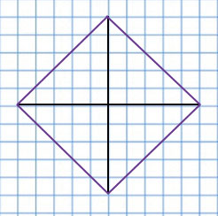 Сначала чертим две диагонали по 5 см, которые пересекаются в их серединах, затем по последовательно соединяем концы диагоналей.