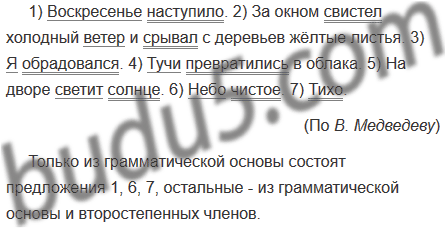 Запишите предложения, в каждом из них подчеркните грамматическую основу. Какие предложения состоят только из грамматической основы, а какие — из грамматической основы и второстепенных членов?