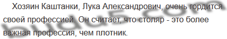 Герой рассказа А. Чехова «Каштанка» столяр Лука Александрыч говорил Каштанке: «А ты, Каштанка, недоумение. Супротив человека ты всё равно, что плотник супротив столяра». Попробуйте объяснить эту фразу.