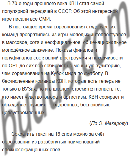 Прочитайте текст. Обратите внимание на используемые в нём словосочетания - развёрнутые наименования. Попробуйте сократить этот текст на 16 слов. За счёт чего это можно сделать?