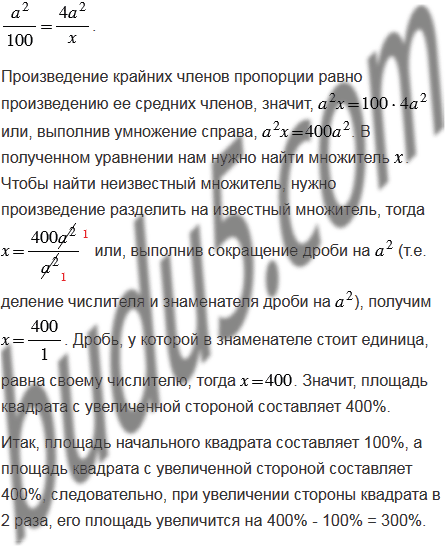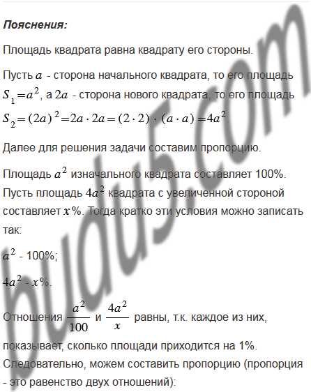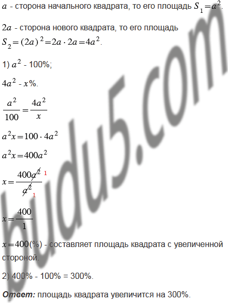 На сколько процентов увеличится площадь квадрата, если каждую из его сторон увеличить в 2 раза?