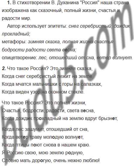 1. Какой изображает автор нашу страну? Какие средства выразительности использованы в стихотворении?