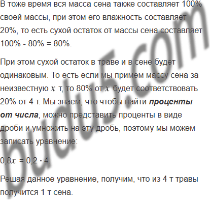 Влажность травы составляет 80%, а сена - 20%. Сколько килограммов сена получат из 4 т травы?