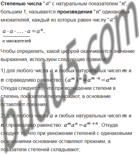 Какой цифрой оканчивается значение выражения ( - натуральное число):