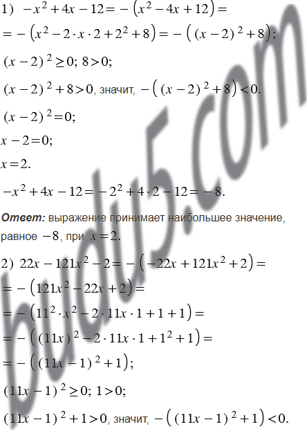 Докажите, что данное выражение принимает отрицательное значения при всех значениях ; укажите, какое наибольшее значение принимает это выражение и при каком значении :