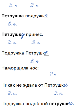 • Укажите падеж имён существительных. Допишите падежные окончания.
