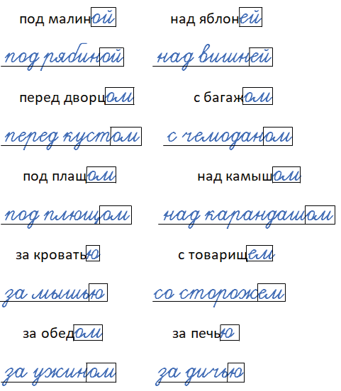 Прочитайте. Допишите пропущенные окончания имён существительных в творительном падеже.