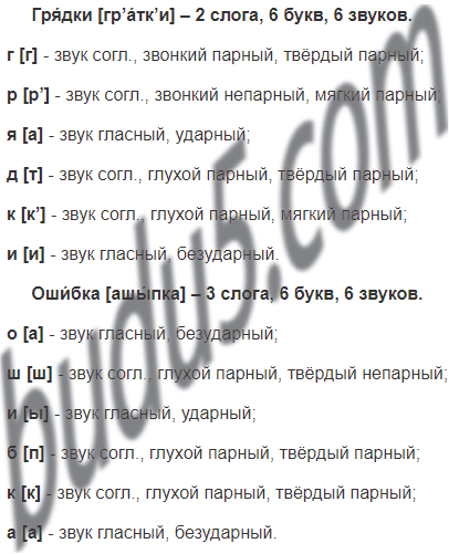 грядки, ошибка - проведи звуко-буквенный разбор слов